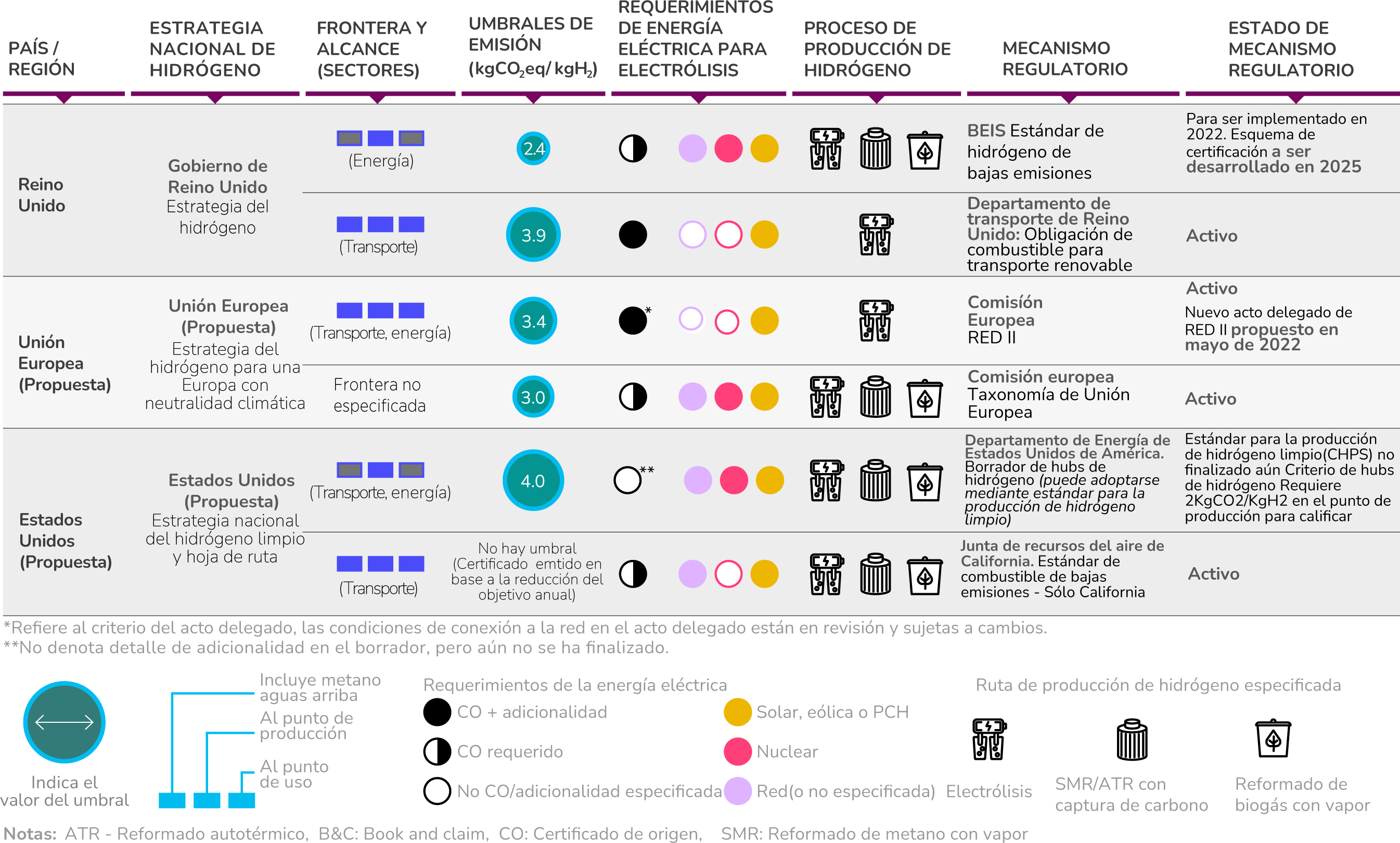 Fuente: IRENA and RMI (2023), Creating a global hydrogen market: Certification to enable trade, International Renewable Energy Agency, Abu Dhabi; and RMI, Colorado.